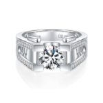 This S925 sterling silver men’s luxury ring features a dazzling 2-carat moissanite (D color, VVS1 clarity) set in a modern U-shaped design adorned with geometric patterns. Durable and resistant to tarnishing, the ring perfectly blends approachable luxury with everyday style. Whether for weddings, anniversaries, business occasions, or everyday wear, it’s a timeless choice to showcase elegant taste.