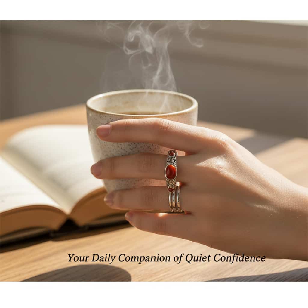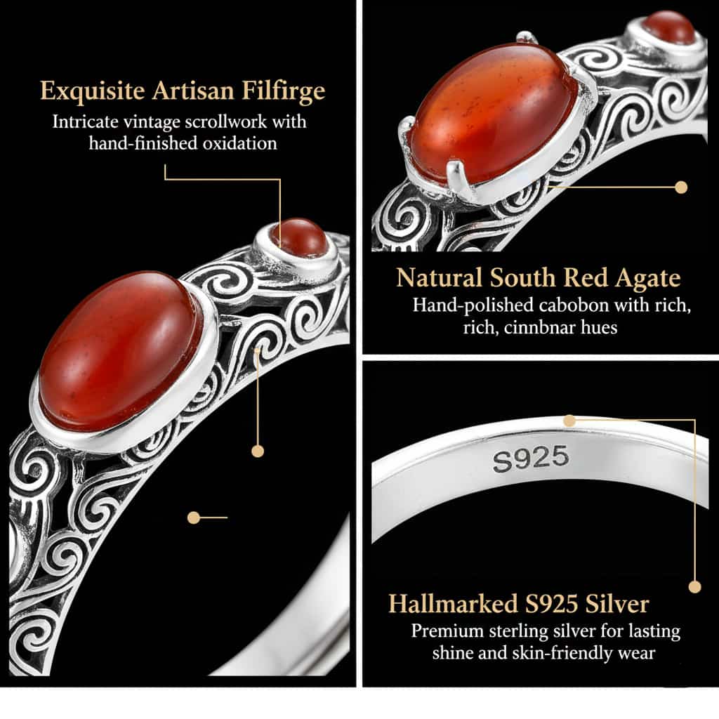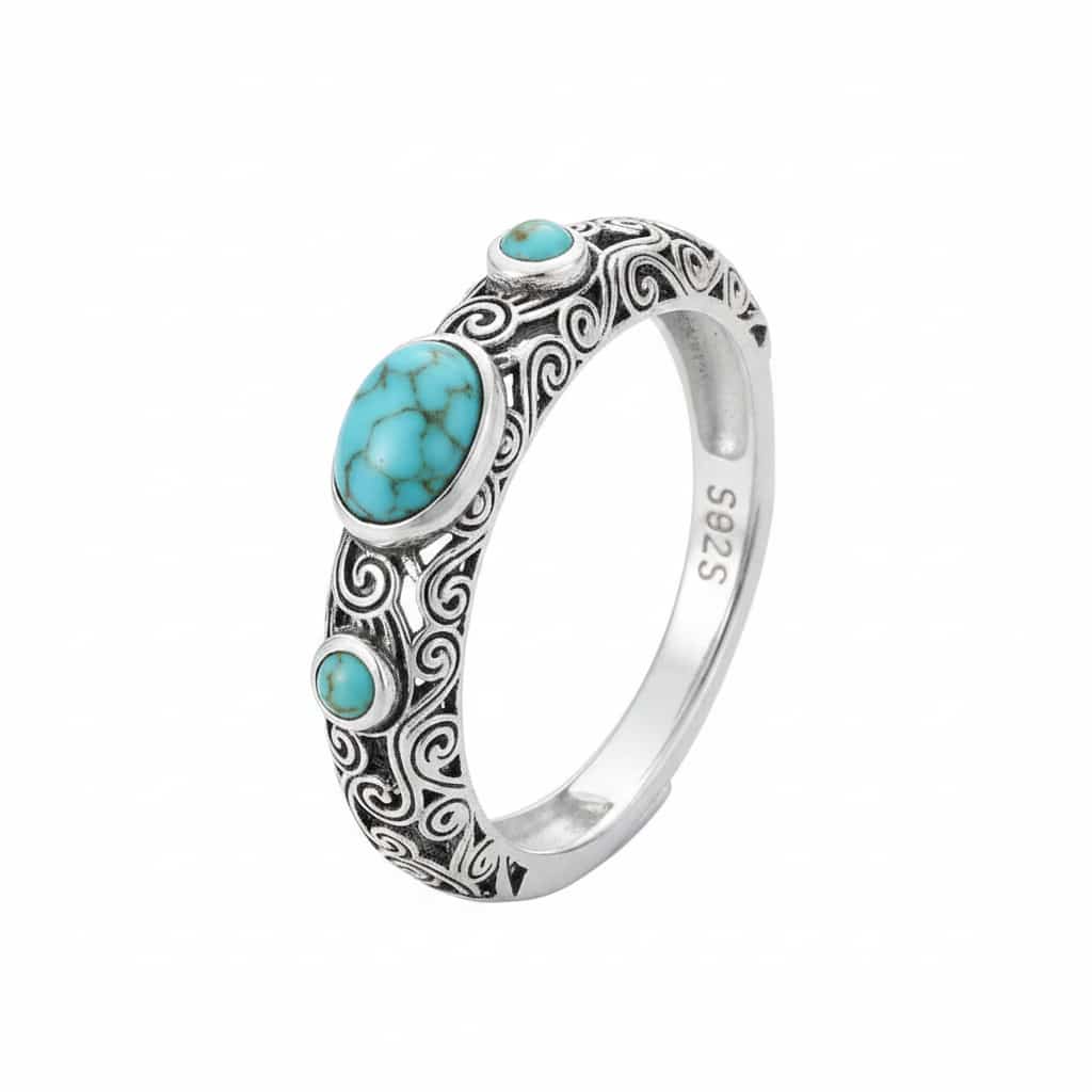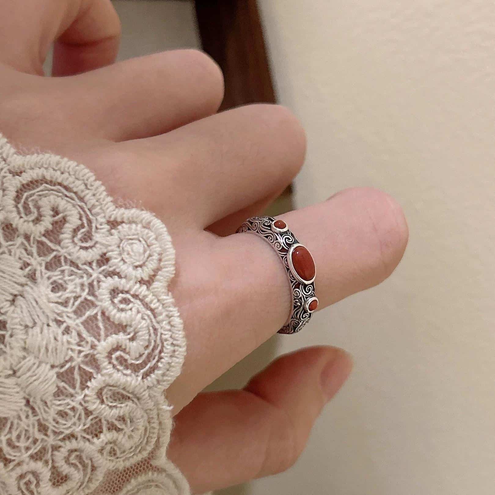 This handcrafted 925 sterling silver adjustable open ring will elevate your jewelry collection. Designed for both men and women, this ring features a hypoallergenic material, a fashionable bohemian design, and is adorned with delicate geometric carvings and a vintage oxidized finish. Each ring is set with a natural gemstone – choose from natural red agate, black onyx, or stabilized turquoise to express your unique style.