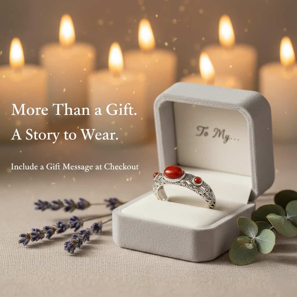 When not in use, store your ring in an airtight pouch or jewelry box to prevent natural tarnishing caused by oxygen.