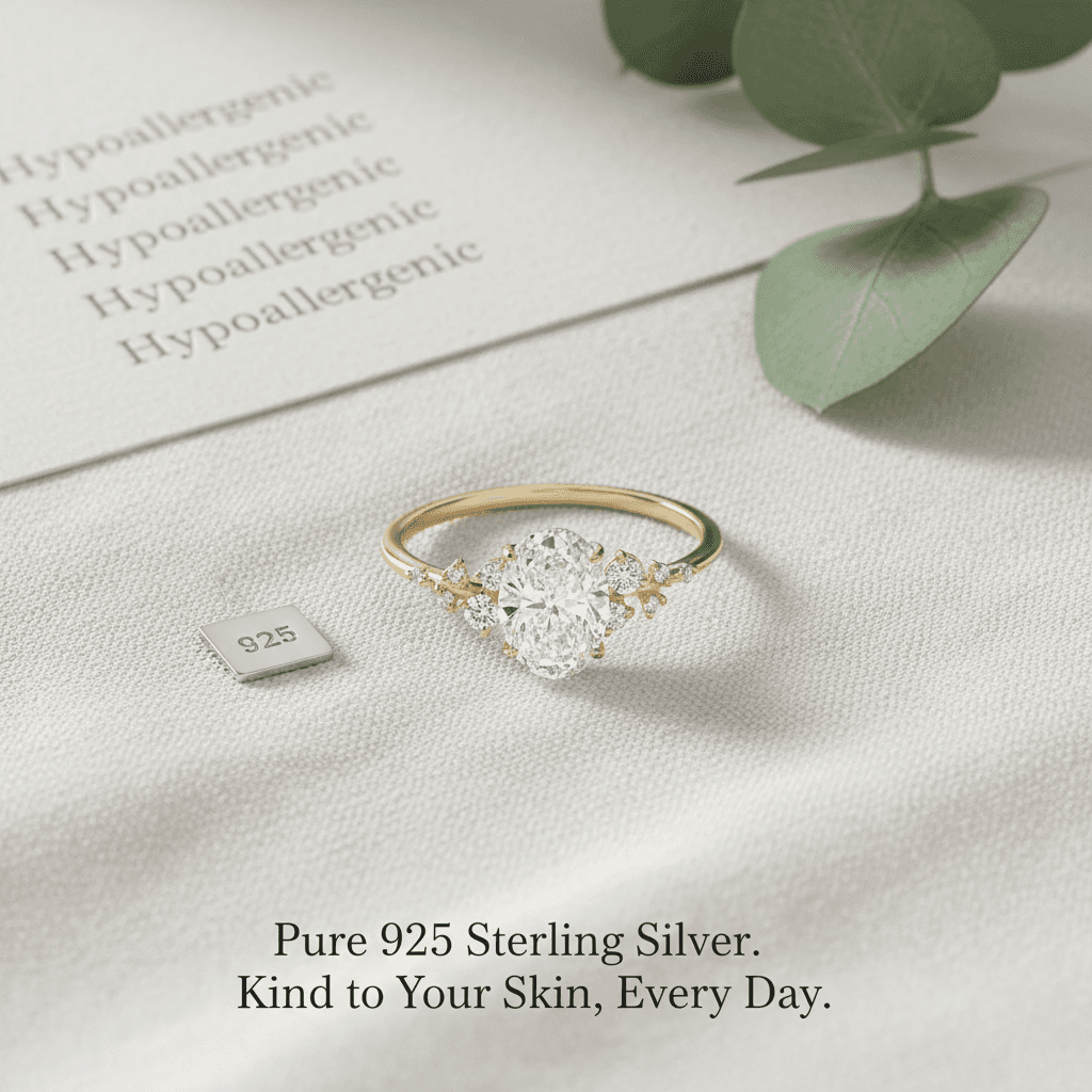 Capture the brilliance of a starlit night. Our Constellation Ring blends modern geometric lines with the timeless fire of a precision-cut oval zirconia. Set in hypoallergenic 925 sterling silver, it’s a delicate yet daring signature piece designed to elevate your everyday look with a touch of celestial luxury.