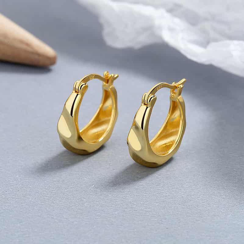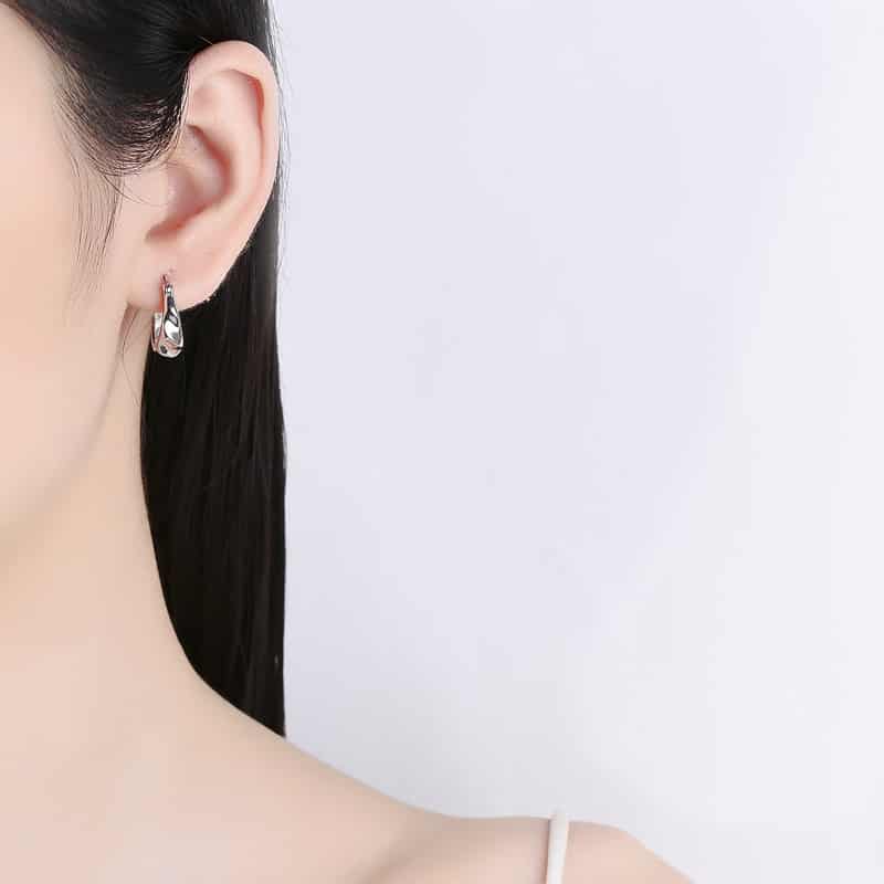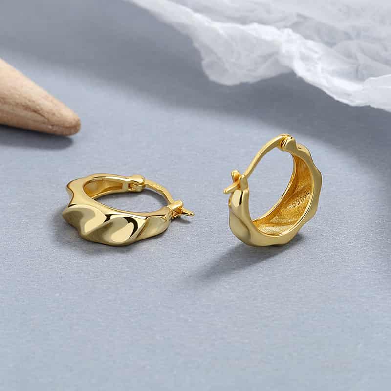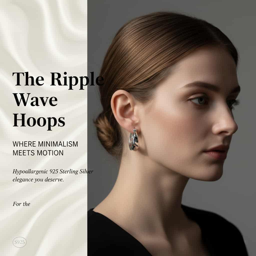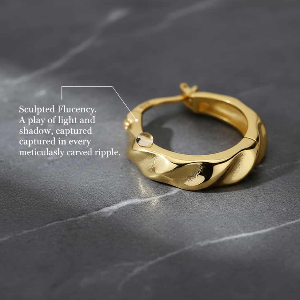 These ripple earrings perfectly blend simple geometry with fluid artistry, adding a touch of brilliance to your jewelry collection. The meticulously crafted surface features wave patterns that sway in the breeze, creating a play of light and shadow, infusing the classic design with refined elegance.