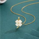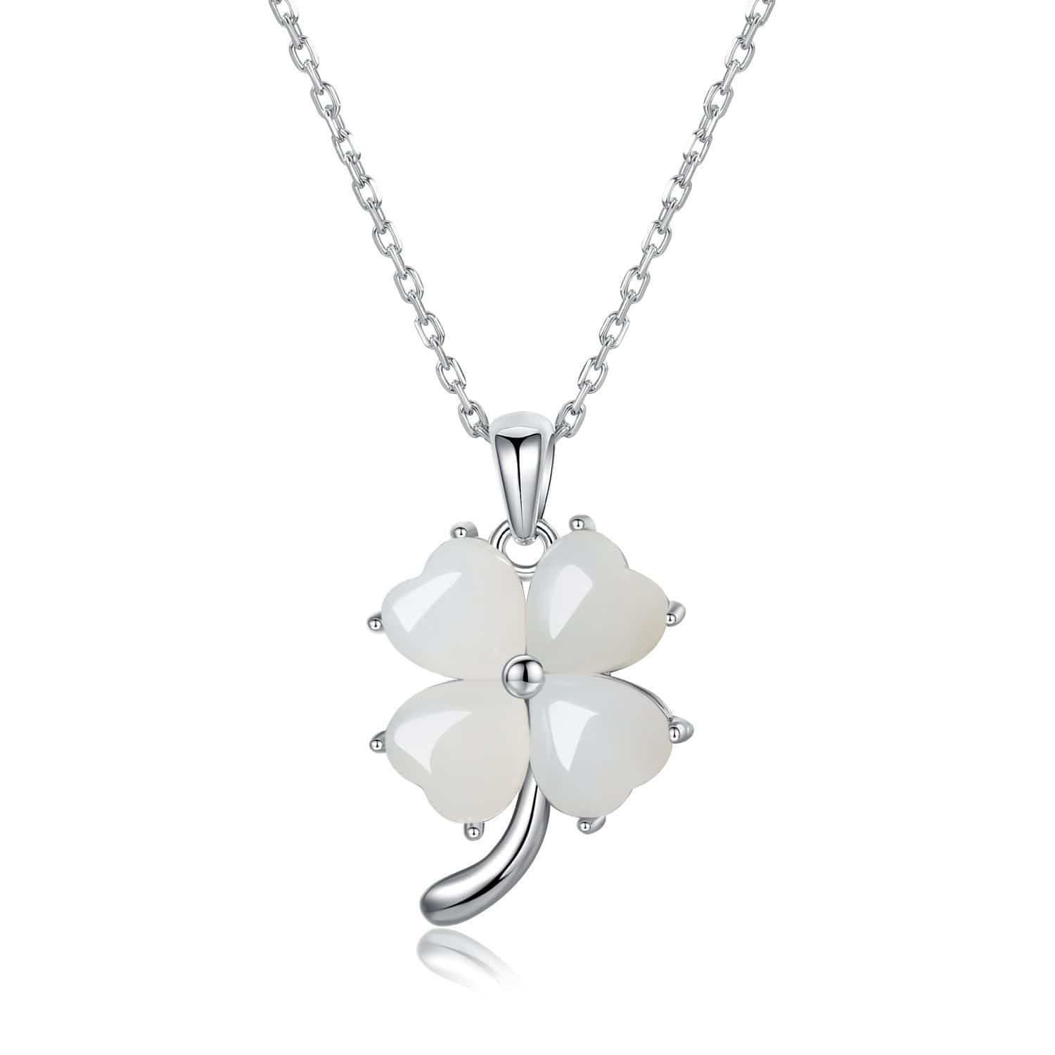 925 Sterling Silver Jade Necklace for Women, Natural Hetian Jade Four Leaf Clover Pendant, Hypoallergenic Lucky Flower Jewelry, Birthday Gift for Her