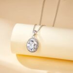 S925 sterling silver oval birthstone necklace, women's style, personalized geometric gemstone pendant, exquisite and simple jewelry, a perfect gift for her