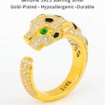 Bold Gold-Plated Leopard Head Sterling Silver Ring (S925) — Women’s Adjustable Animal Print Fashion Jewelry
