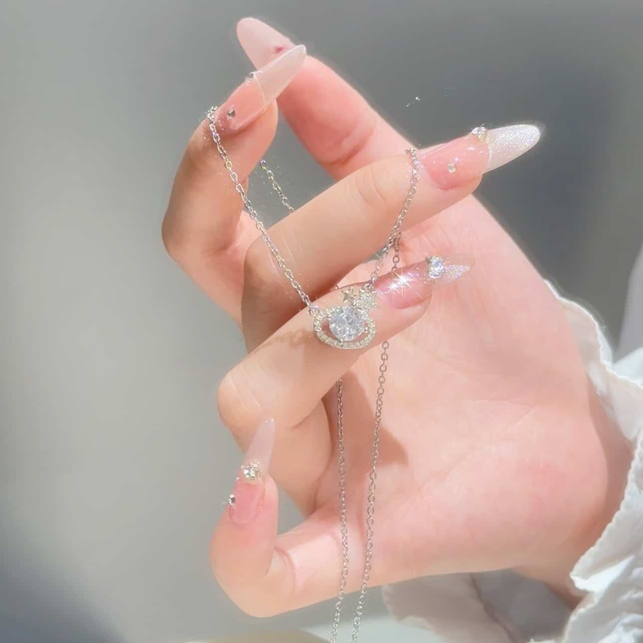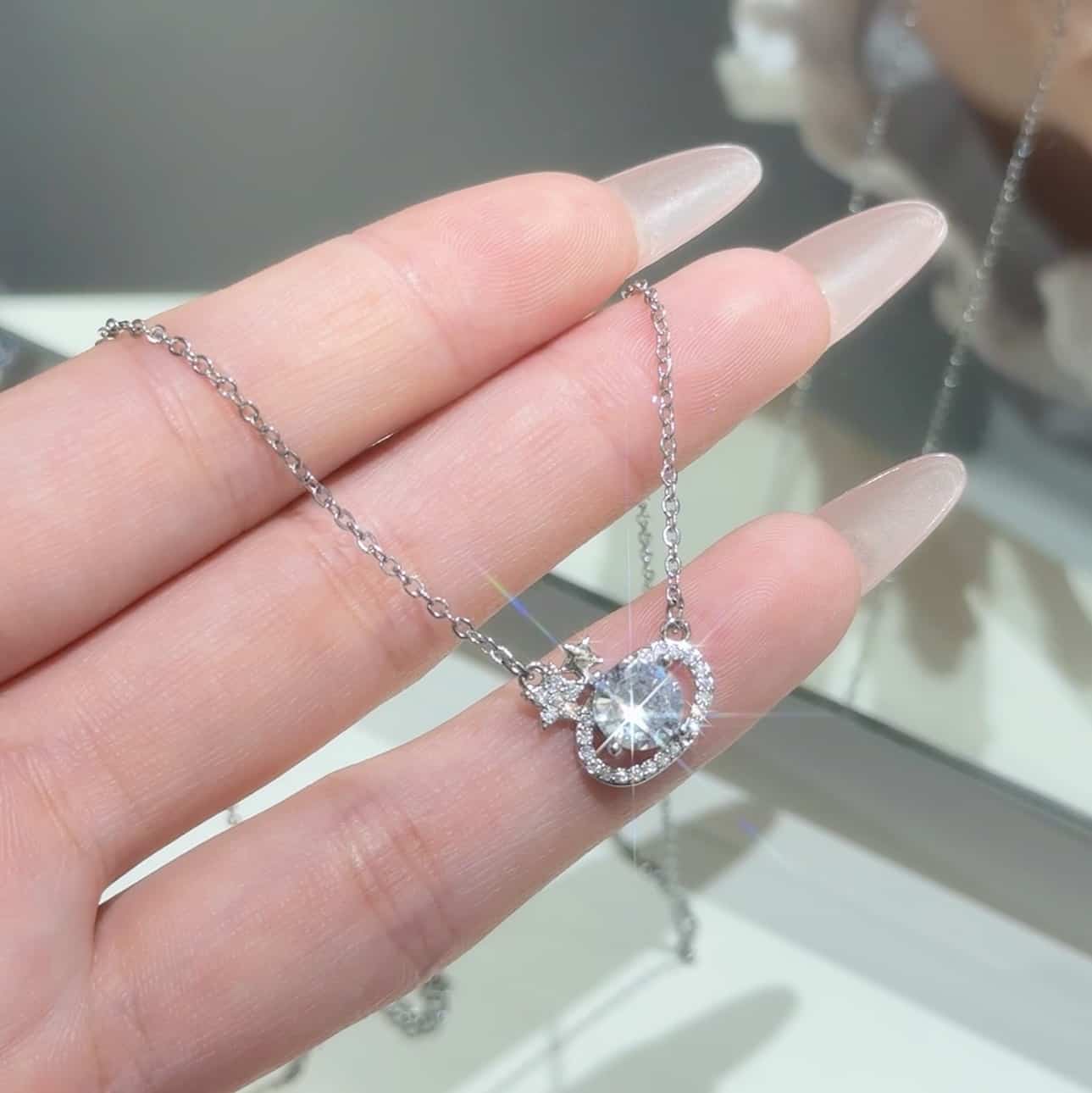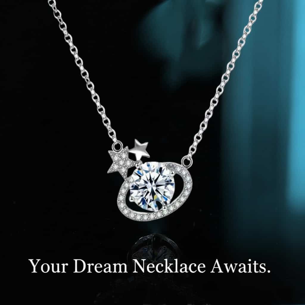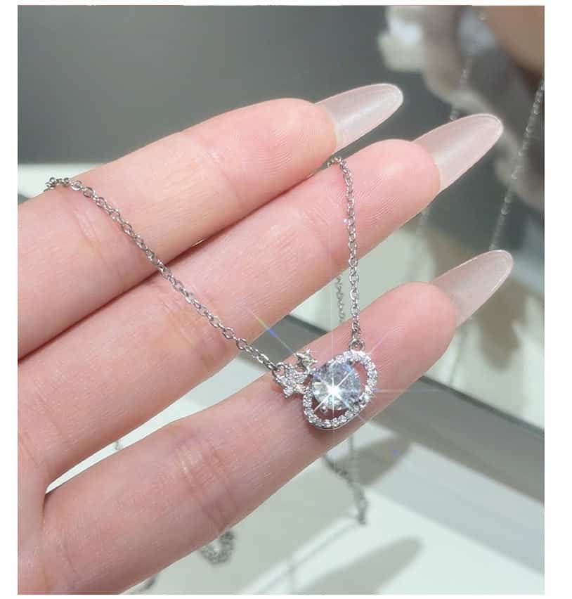 This dreamy planet necklace features a 1-carat moissanite or high-quality zircon, crafted in 925 sterling silver and finished with a delicate white gold plating. Lightweight at only 2.3 grams, the necklace boasts a 40+5 cm adjustable chain and a minimalist starry sky design, allowing you to shine brightly in everyday wear. Made with hypoallergenic materials that resist tarnishing, and incorporating over 10 years of experience in silver jewelry making, this necklace is the perfect gift for loved ones.