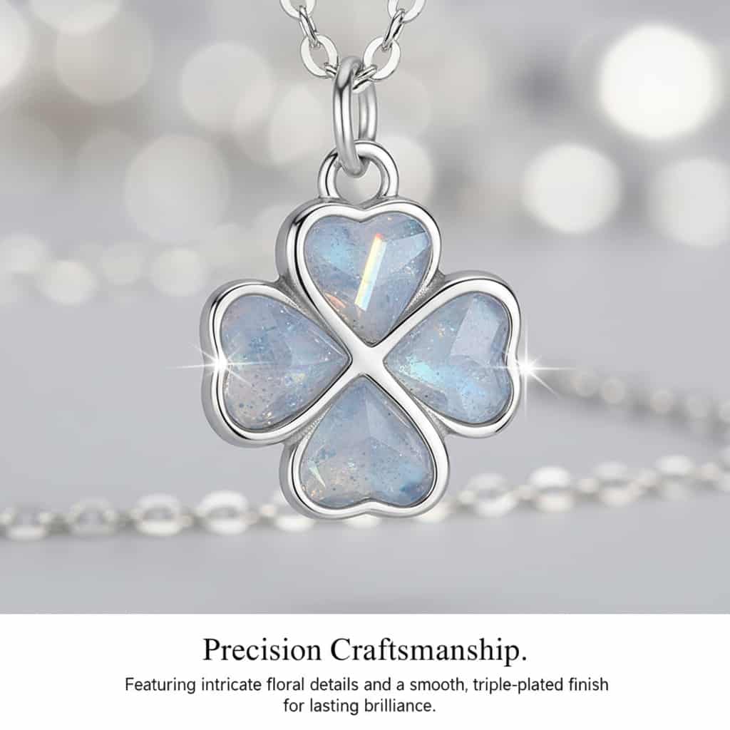 Embrace daily luck with the Mirametal Icy Isle Four-Leaf Clover Necklace. Crafted from premium S925 Sterling Silver, this dainty jewelry piece features a symbolic clover pendant with a luxury triple-plated finish for lasting brilliance.