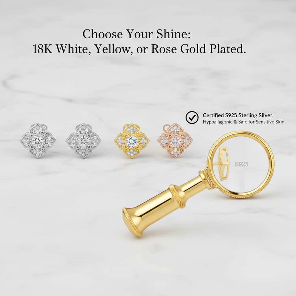 Premium Plating: Available in 18K White Gold, Yellow Gold, or Rose Gold options to suit any skin tone.