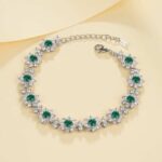 This geometric gemstone bracelet adds a touch of elegance to your everyday look. Crafted from premium 925 sterling silver and plated with a thick layer of rhodium, this minimalist bracelet is set with dazzling 3.5mm lab-grown emeralds, rubies, or sapphires. Designed for the modern woman, it combines fade-resistant durability with a refined, sparkling shine, making it suitable for a variety of occasions, from the workplace to special events.