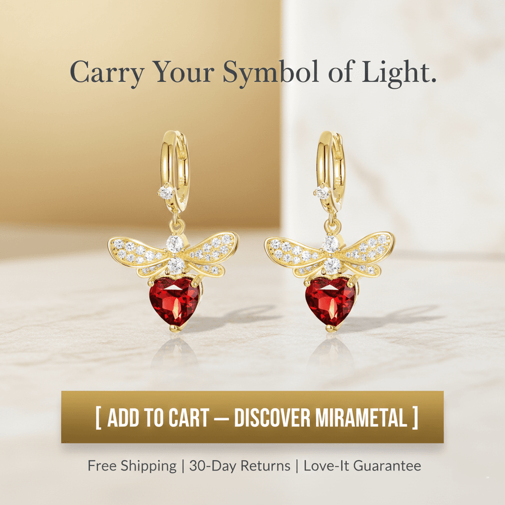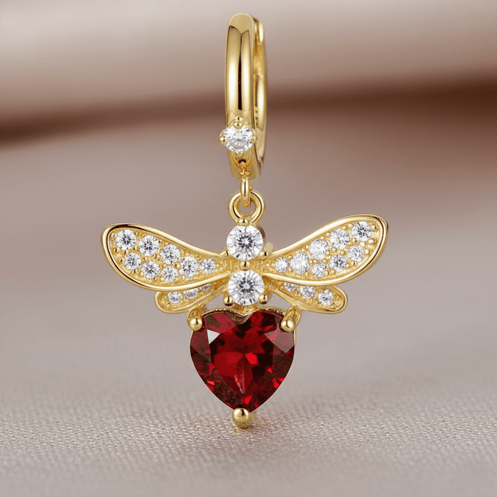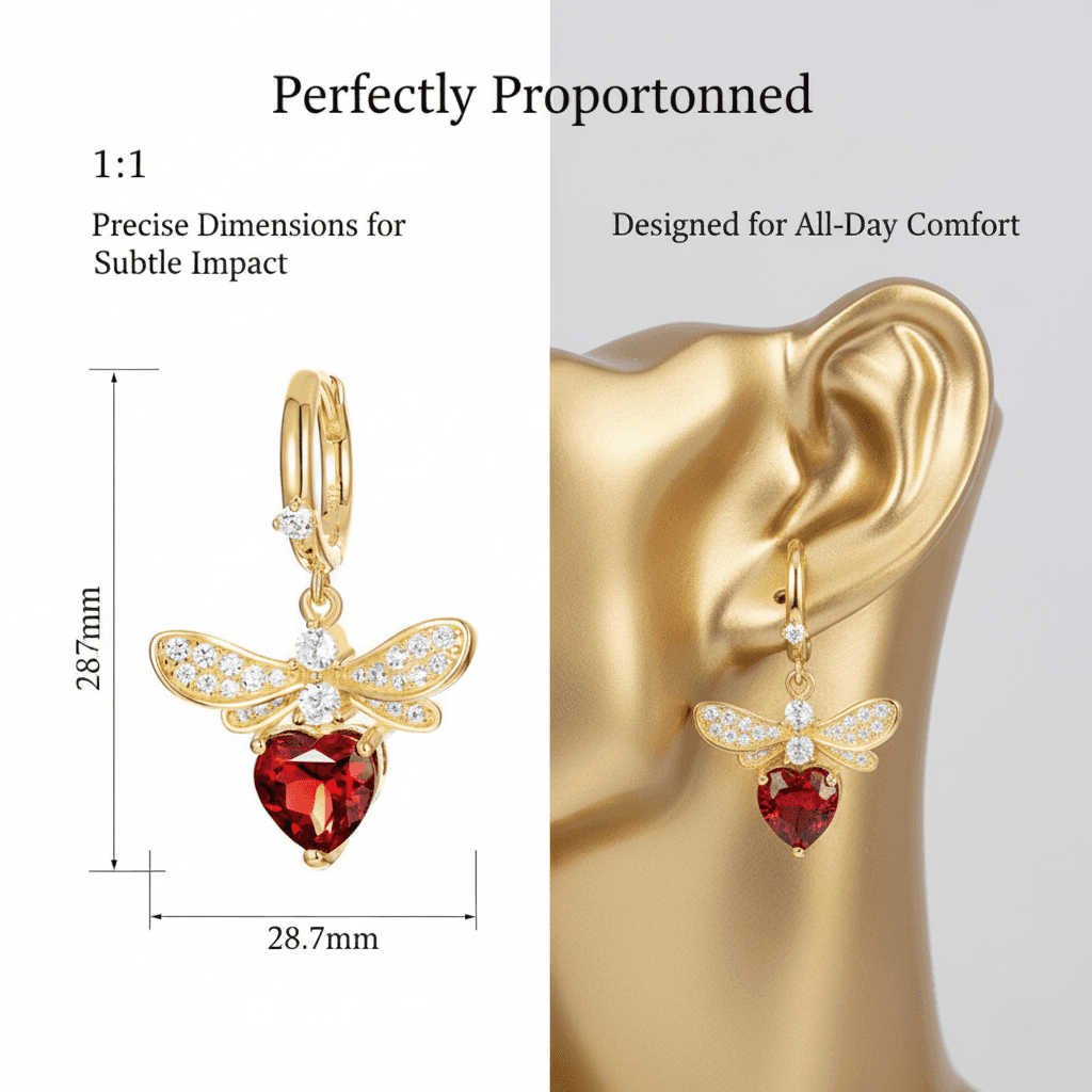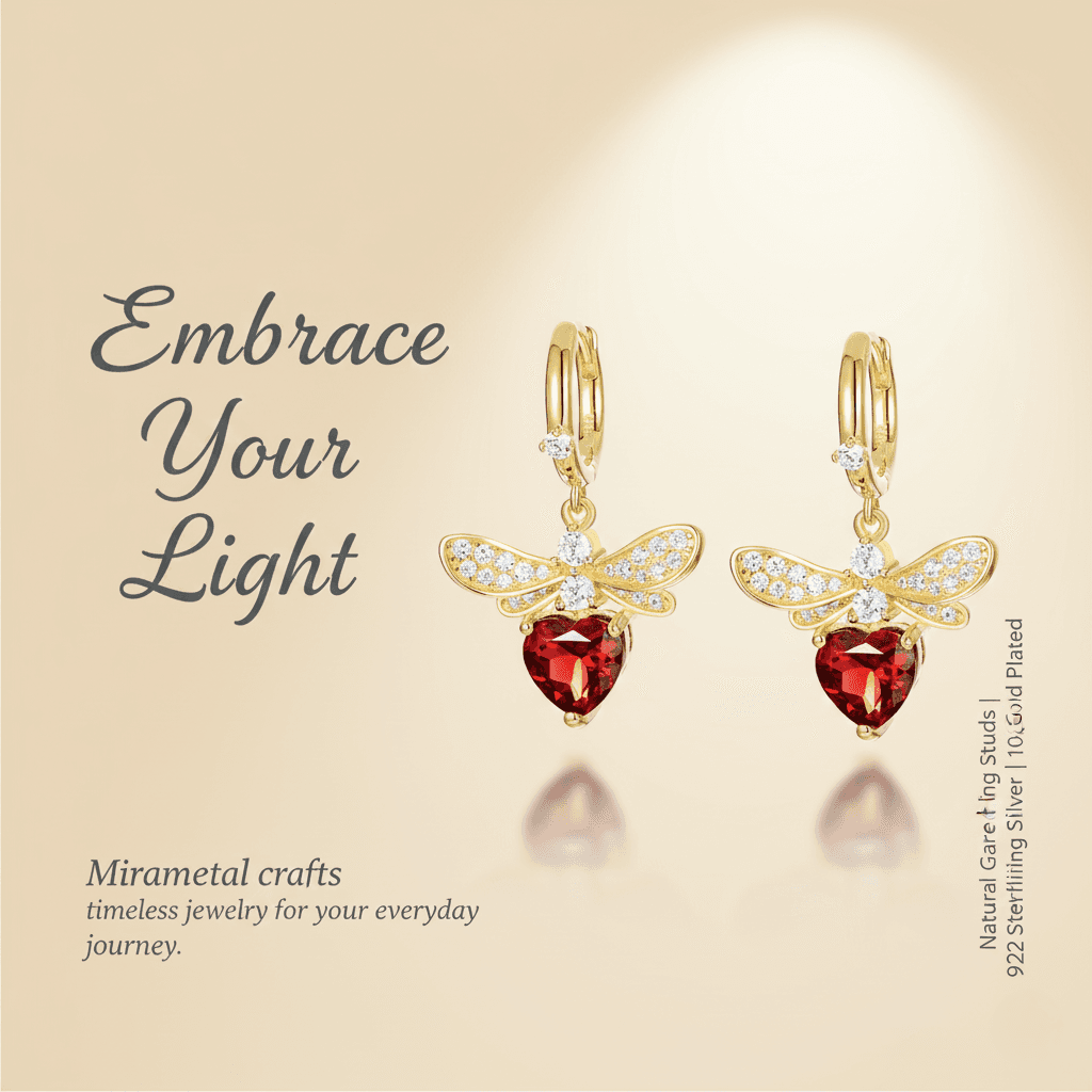 These exquisite bee stud earrings exude natural elegance. Handcrafted from premium 925 sterling silver and plated with luxurious 10K gold, each stud is set with a 7mm natural garnet, radiating a deep and refined luster.