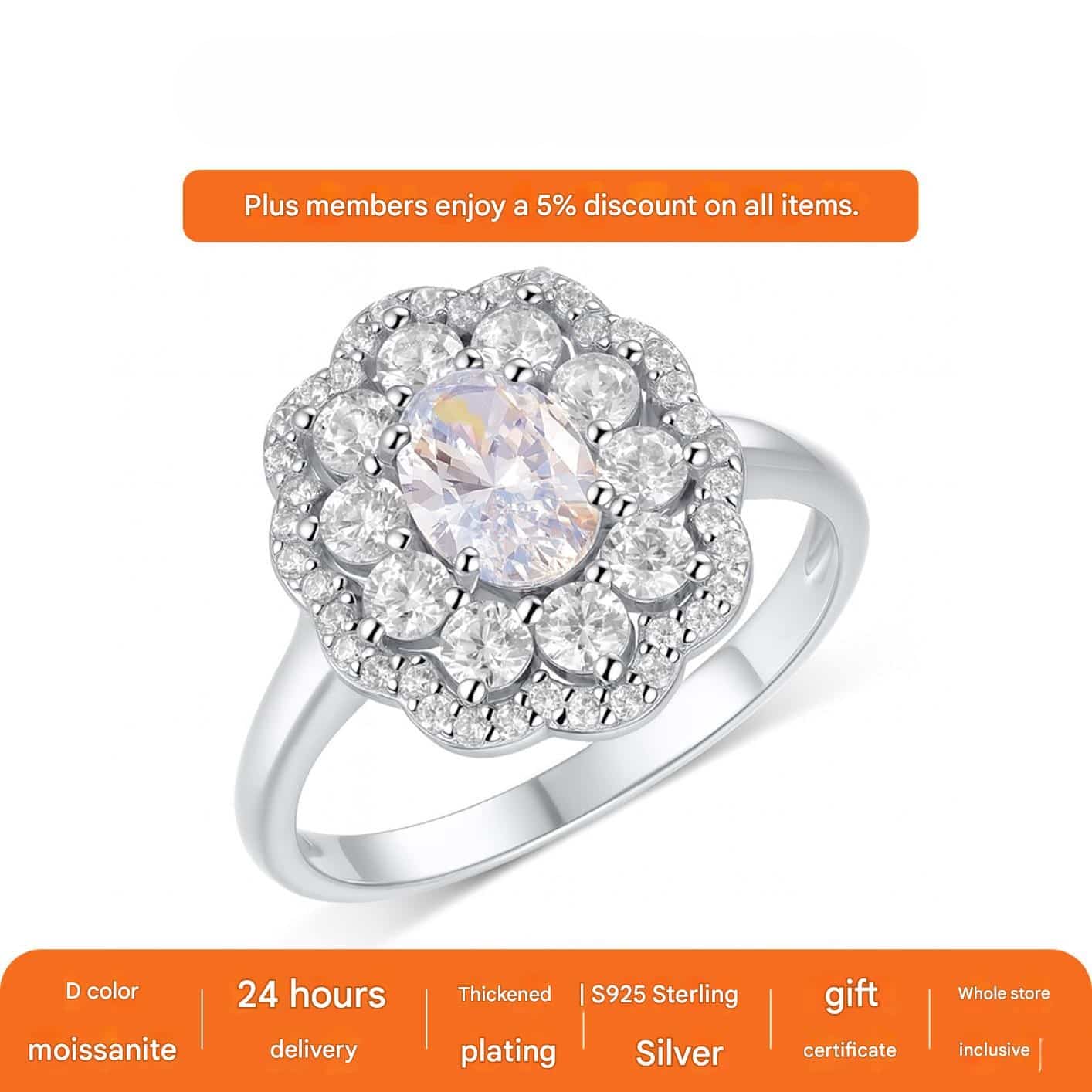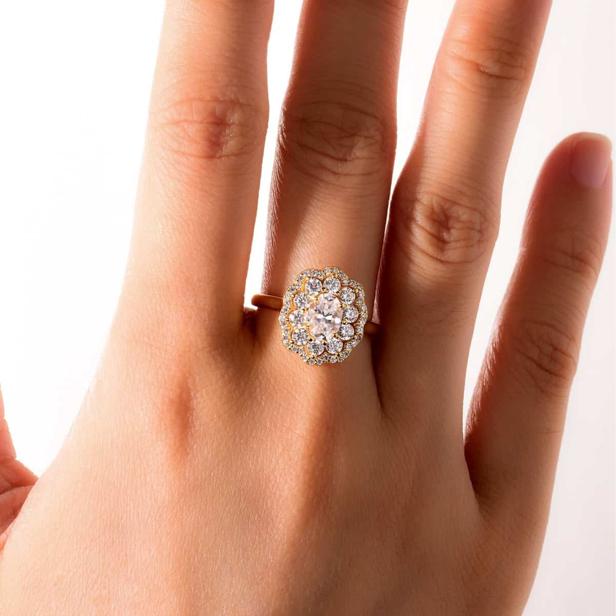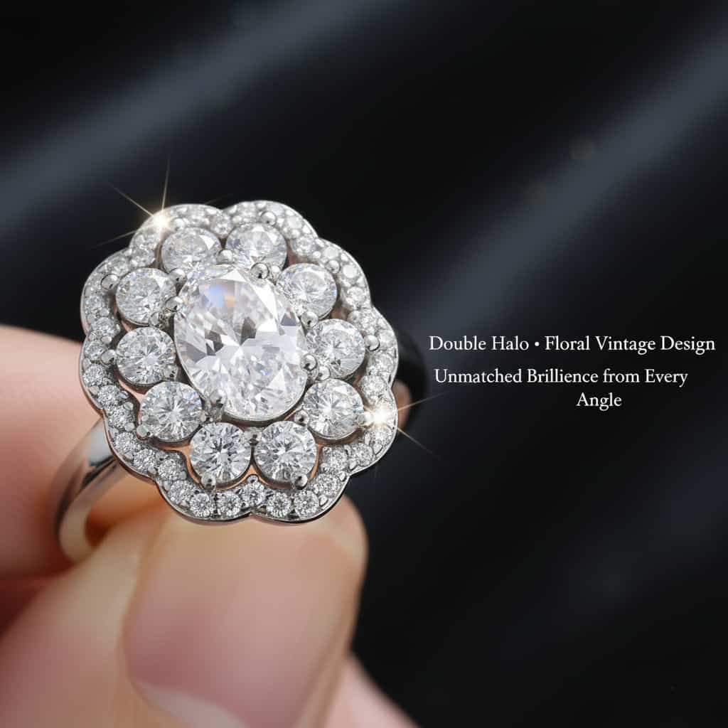 | Gemstone Cut | Brilliant Oval Cut with Double-Layer Floral Halo |