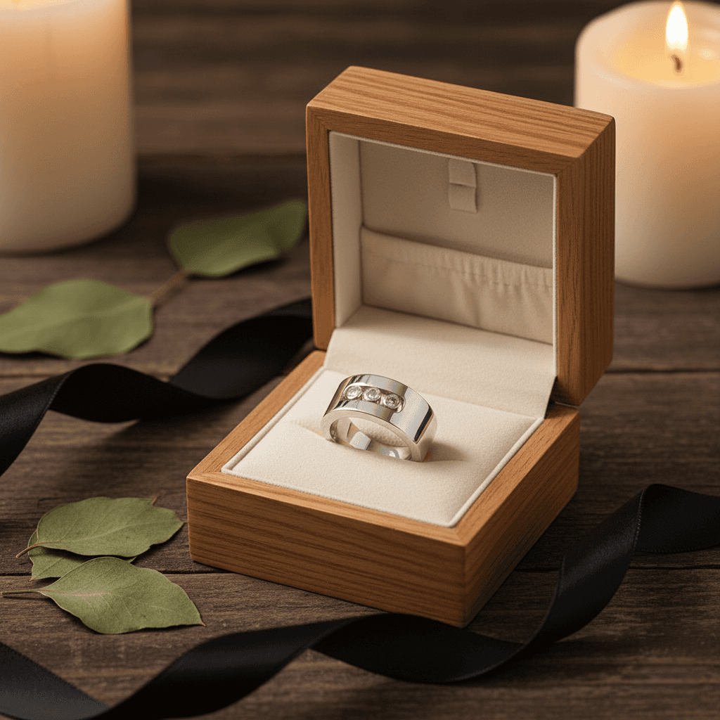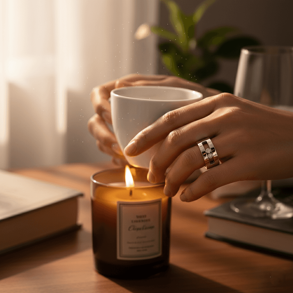 When not in use, store your ring in an airtight pouch or jewelry box to prevent natural tarnishing caused by oxygen.