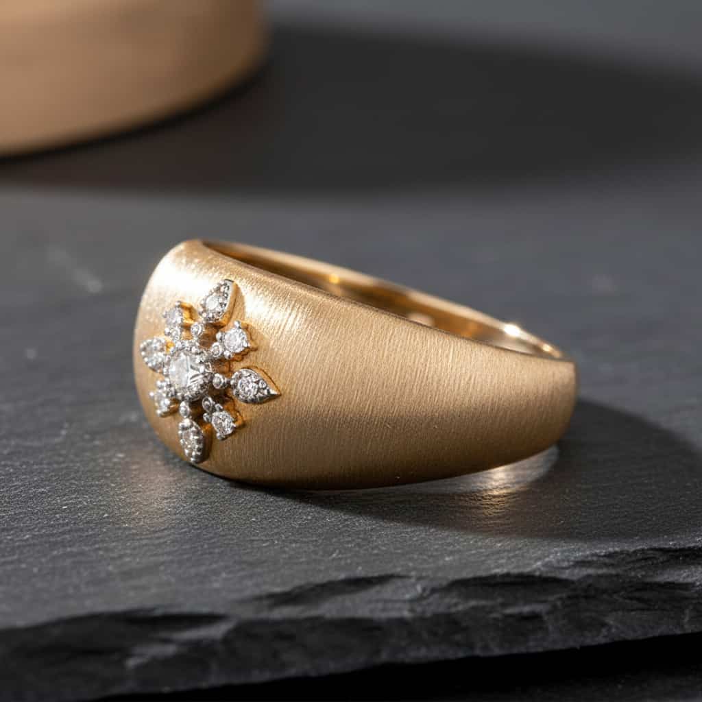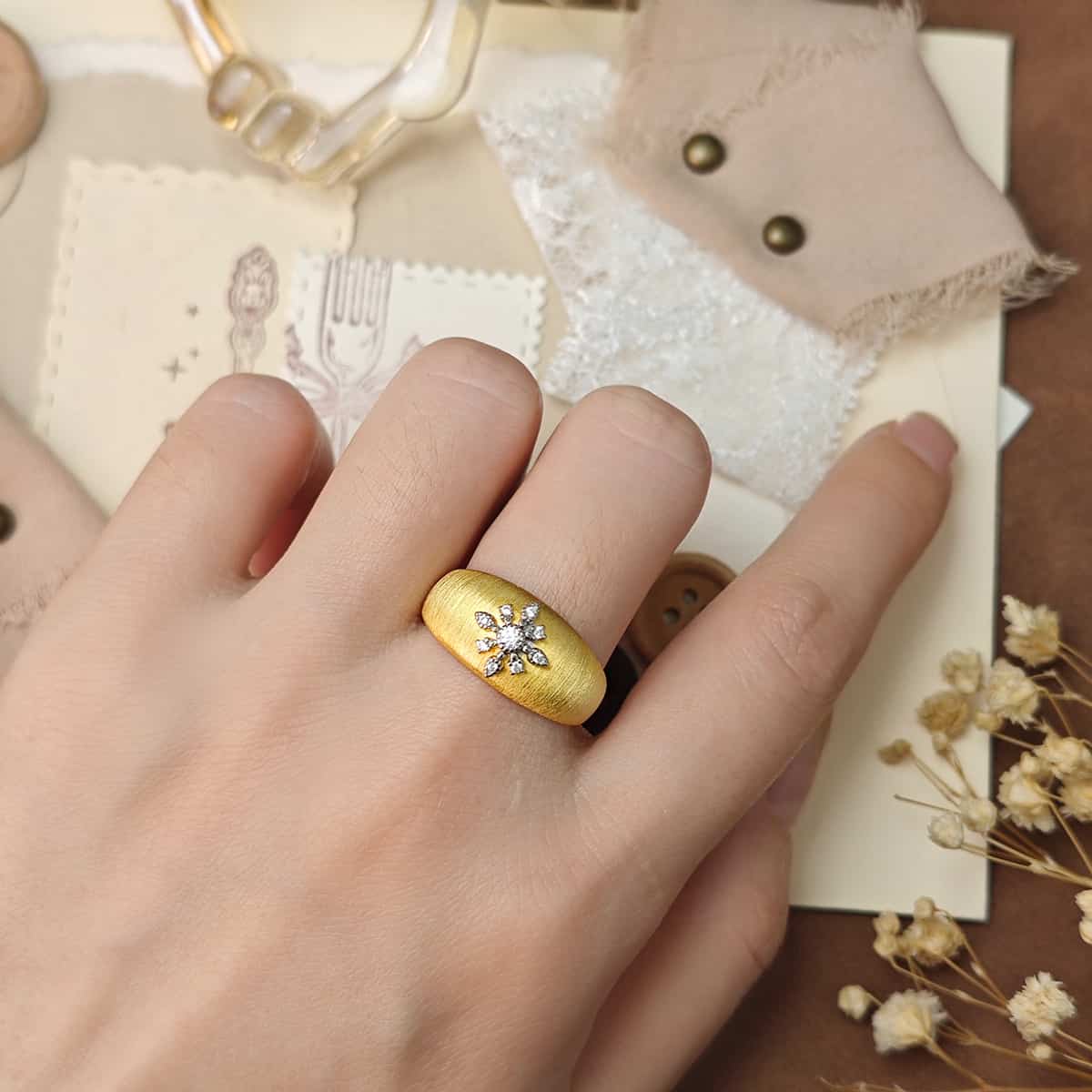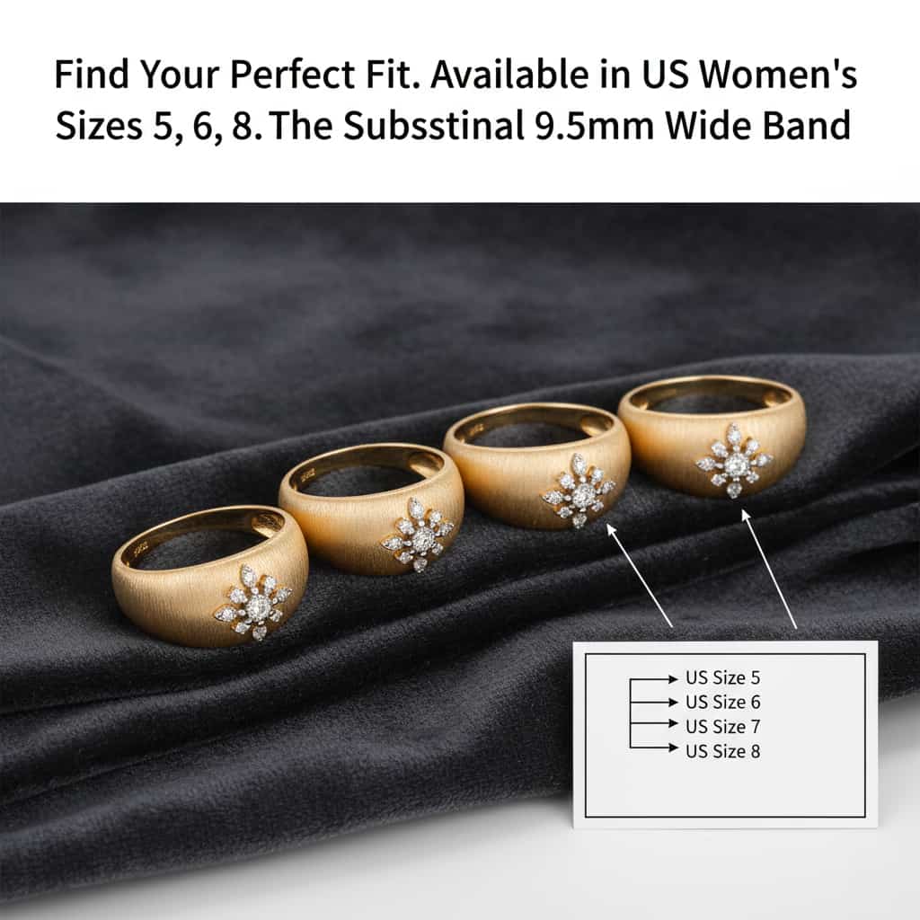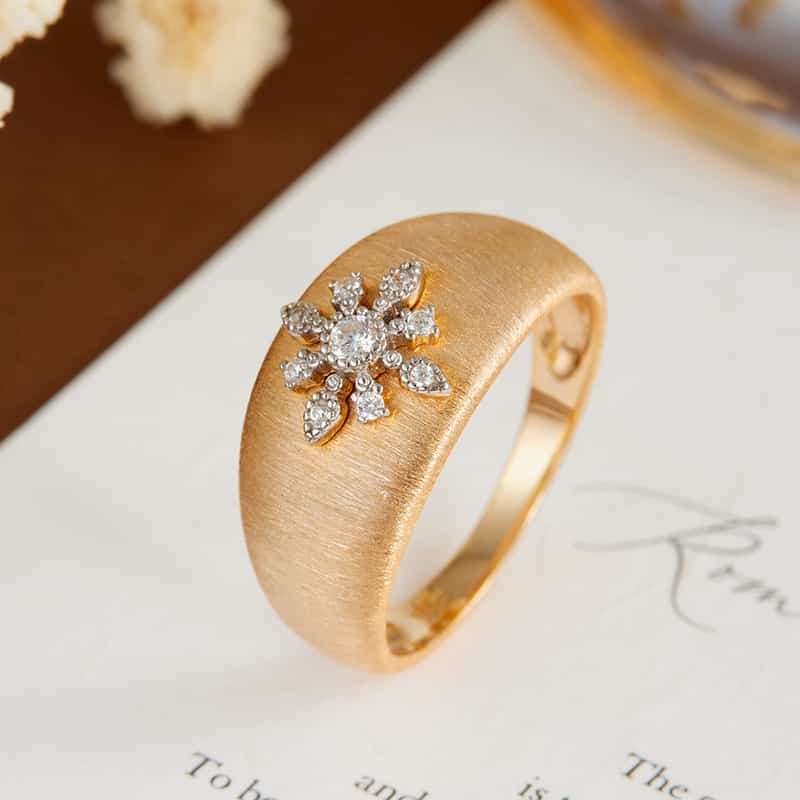 Embrace the timeless charm of winter with our “Snowflake Elegance” statement ring. Crafted from hypoallergenic 925 sterling silver and plated with luxurious 14K gold, this 9.5mm wide band features a unique frosted snowflake pattern and exquisite brushed finish. Whether as a vintage-inspired treat for yourself or a meaningful gift for her, this durable and tarnish-resistant ring will add a touch of refined natural beauty to your jewelry collection.