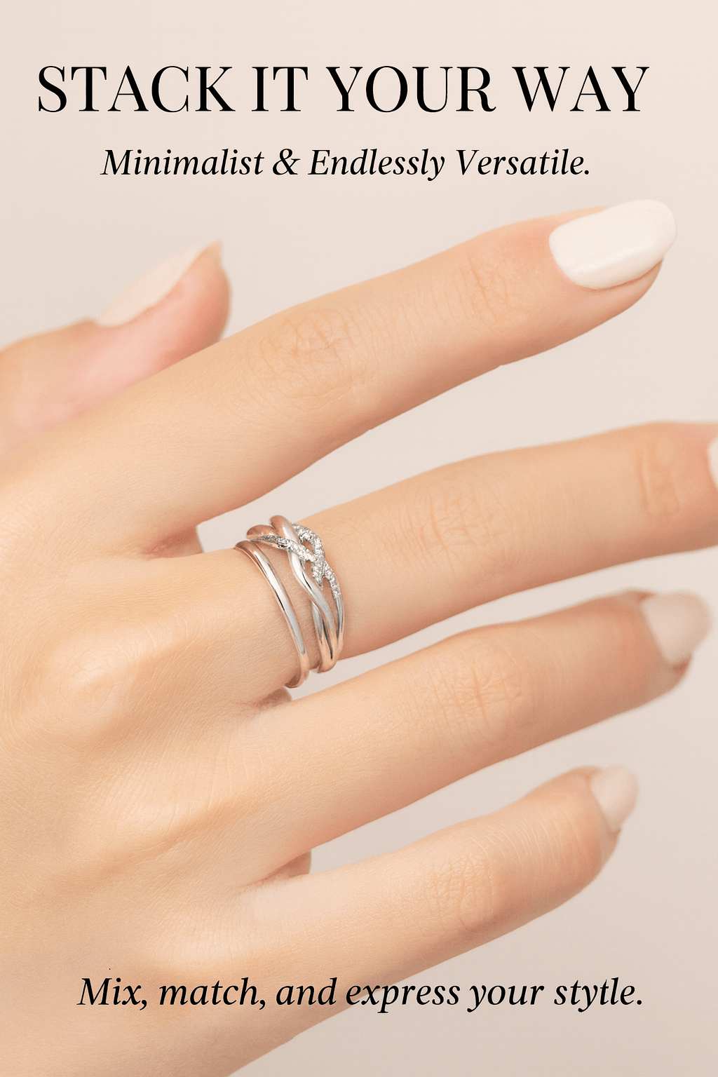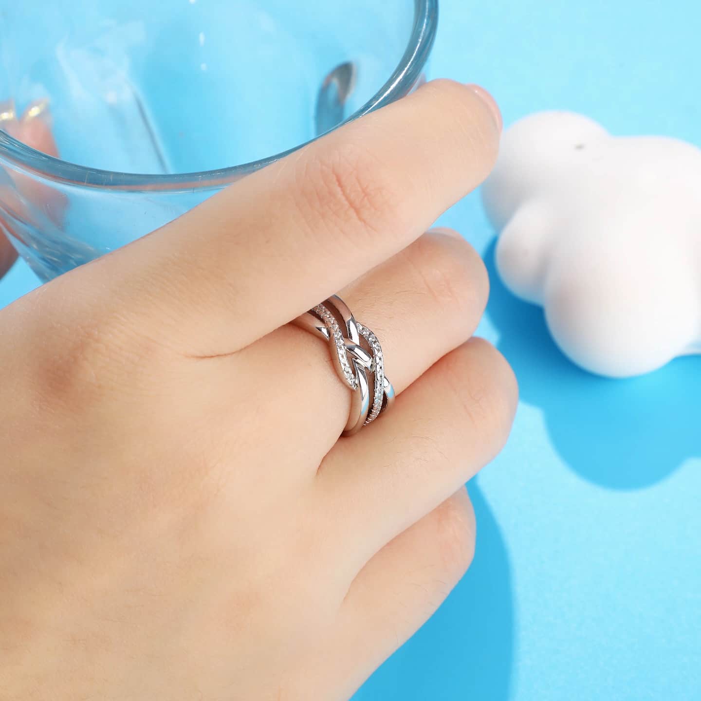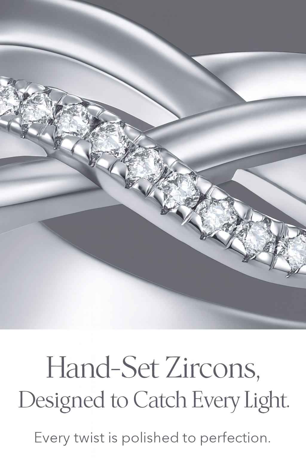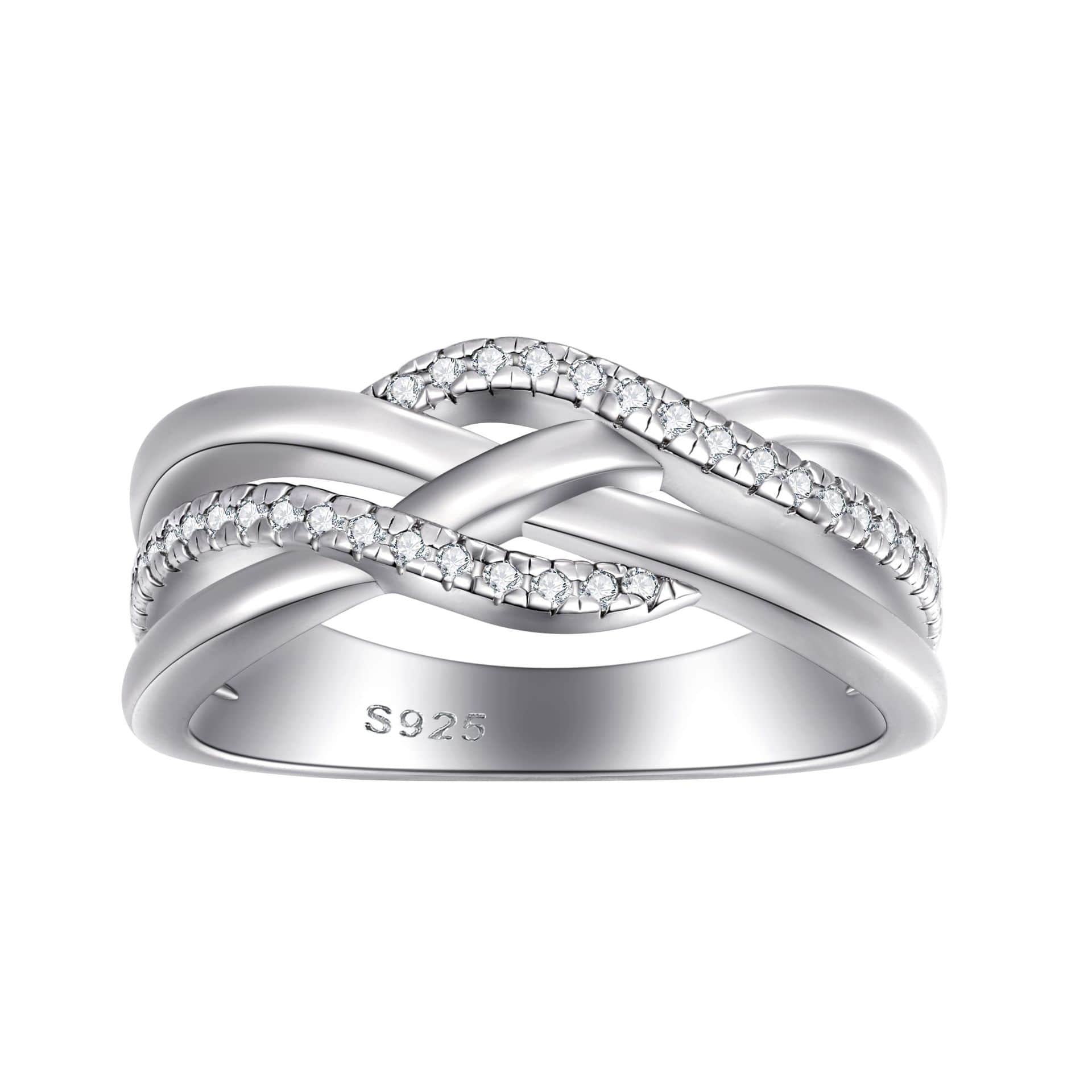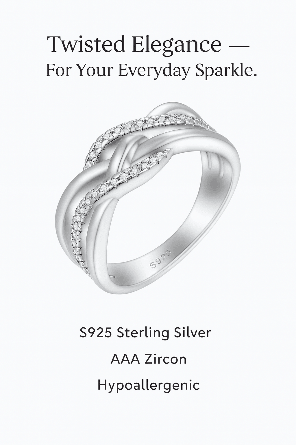 This modern S925 sterling silver twisted ring features a double-ring design and is set with sparkling AAA-grade cubic zirconia . Made of hypoallergenic material, its simple and stylish design makes it suitable for everyday wear or layering with other cherished rings. Exquisite and elegant, it effortlessly adds brilliance—the perfect gift for her.