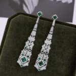 Exude refined elegance with these captivating geometric pendant earrings. These 60mm earrings blend modern minimalist lines with vintage charm, designed to elongate your silhouette and capture light and shadow with every movement. Featuring a unique deep green nano-coating and sparkling 5A-grade zircon, the earrings perfectly balance artistic flair with classic elegance.